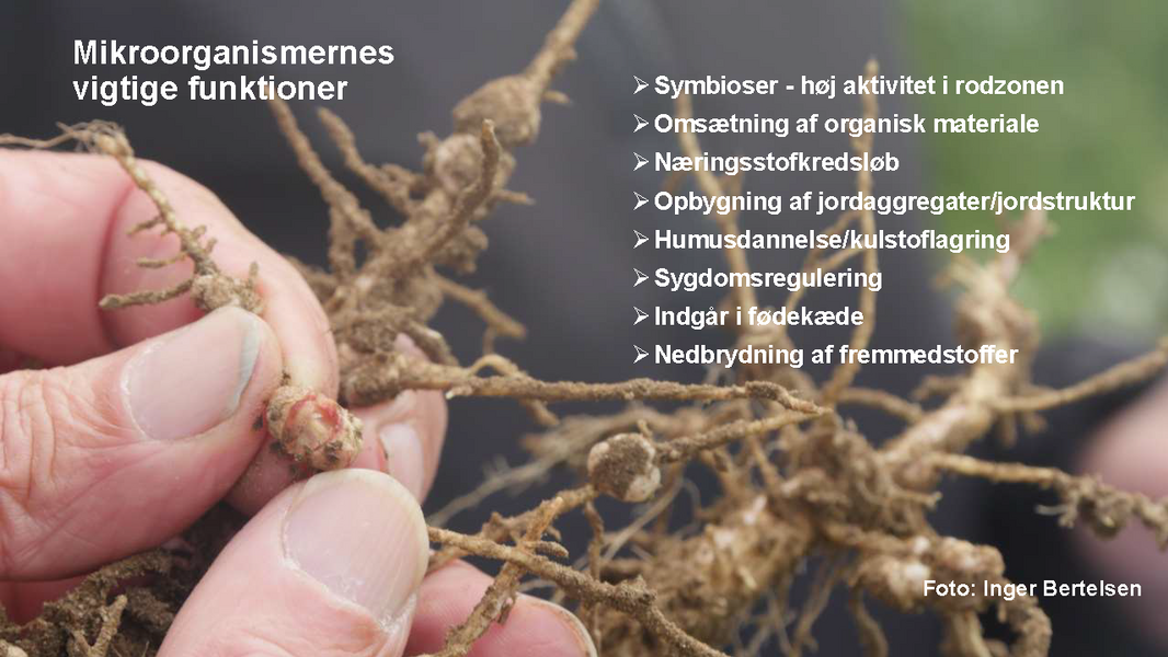 Mikroorganismerne har generelt set vigtige funktioner, som illustreret af et oplæg om Markens mikrobielle samfund af Tove Mariegaard Pedersen, Innovationscenter for Økologisk Landbrug i 2022.